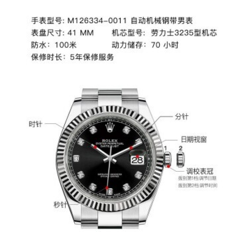 Swiss Rolex Watch Datejust 41 Series Automatic Mechanical Men's Watch M126334-0011 Black Disk With Diamond Three-Grid Chain $412800.0 |