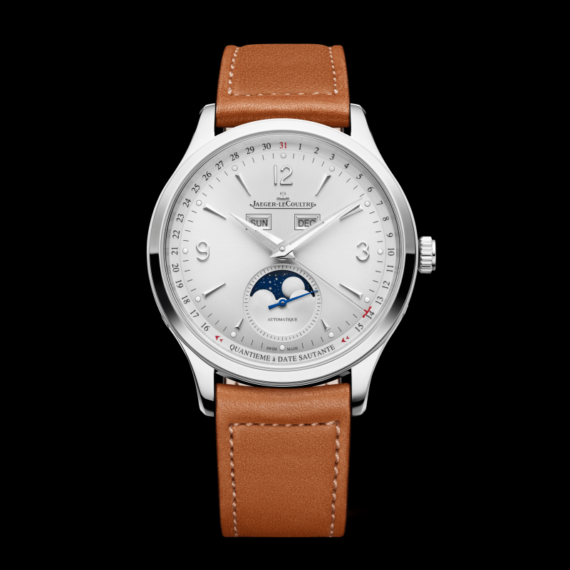 Reloj mecánico oficial de Jaeger-LeCoultre Master Series para hombre, de cuero y calendario completo.