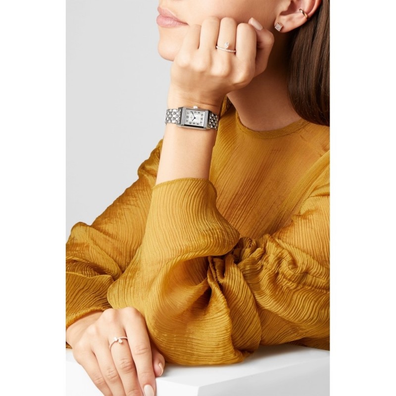 Reloj mecánico oficial de Jaeger-LeCoultre para mujer, de acero inoxidable y diamantes, con la serie Flip.