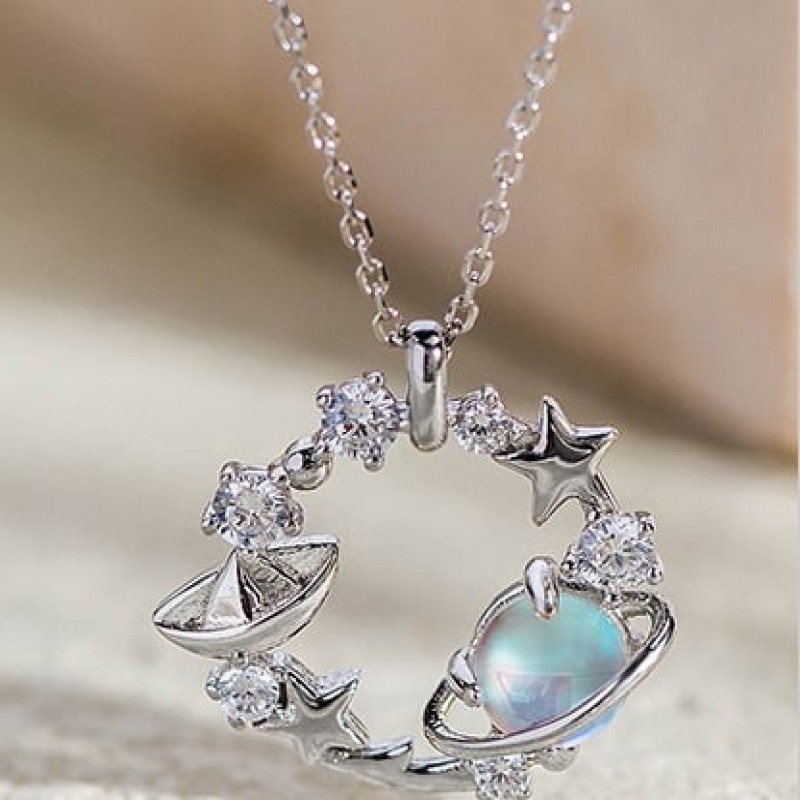 Fanci Fan Qi серебряные украшения Lianlian Planet голубое стекло камень ожерелье женский 925 серебро планета ключица цепь кулон $4598000.0 |
