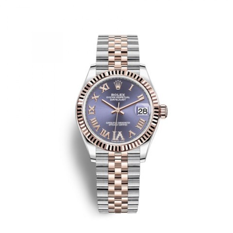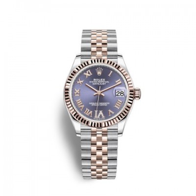 Reloj mecánico automático Rolex para dama Datejust, serie 278271-63361 VIVI con letras romanas en morado berenjena (M278271-0020), de acero dorado Everose.