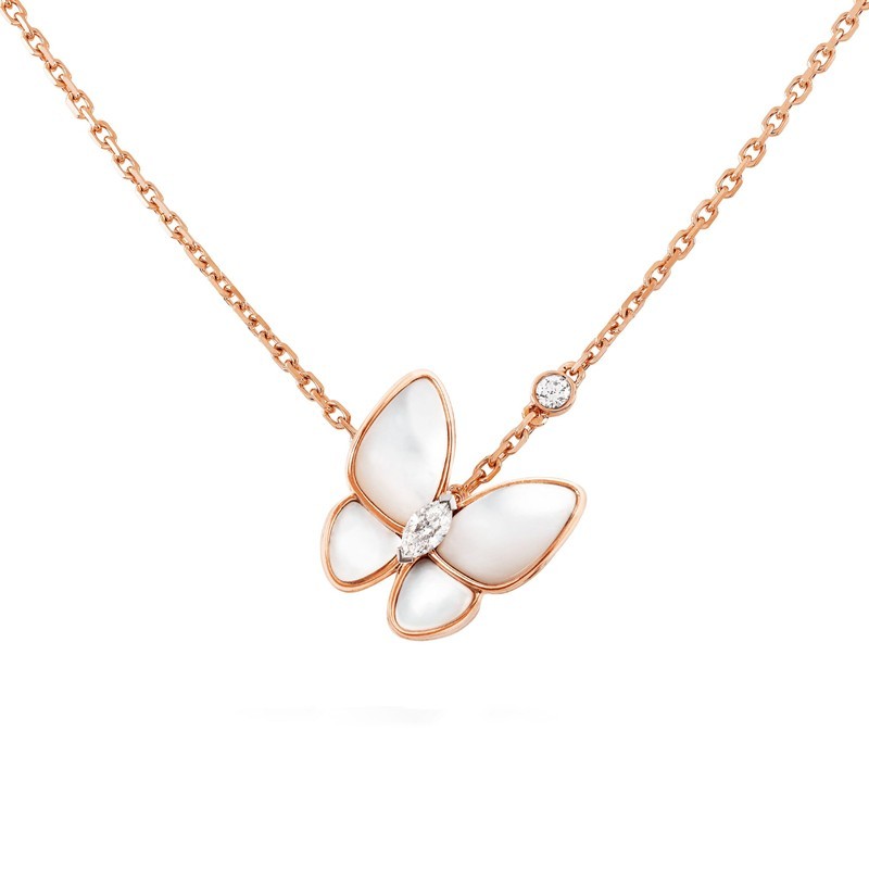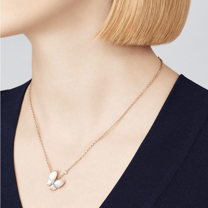Van Cleef & Arpels Classic Deux Papillons Women's White Mother of Pearl Two Butterfly Necklace VCARO8FO00 $4200.0 |